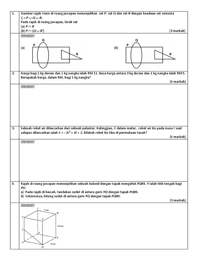 Soalan Lepasan Spm Matematik Beserta Jawapan